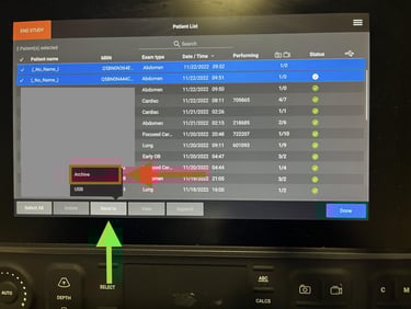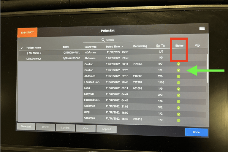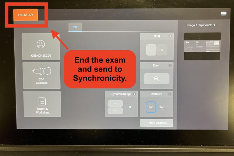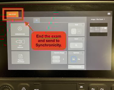 1) Ensure that the current study has been ended by clicking the "End Study" button on the machine. This will start the uploading process for your study.
