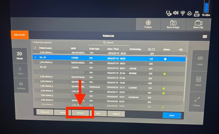1) Ensure that the current study has been ended by clicking the "End Study" button on the machine. This will start the uploading process for your study.
