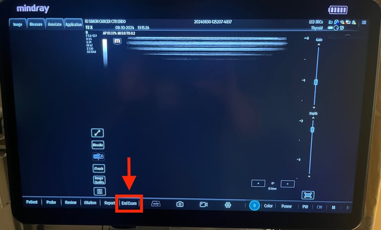 1) Ensure that the current study has been ended by clicking the "End Exam" button on the machine and confirming that you would like to end the exam. This will start the uploading process for your study.
